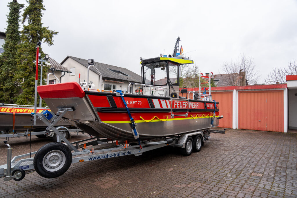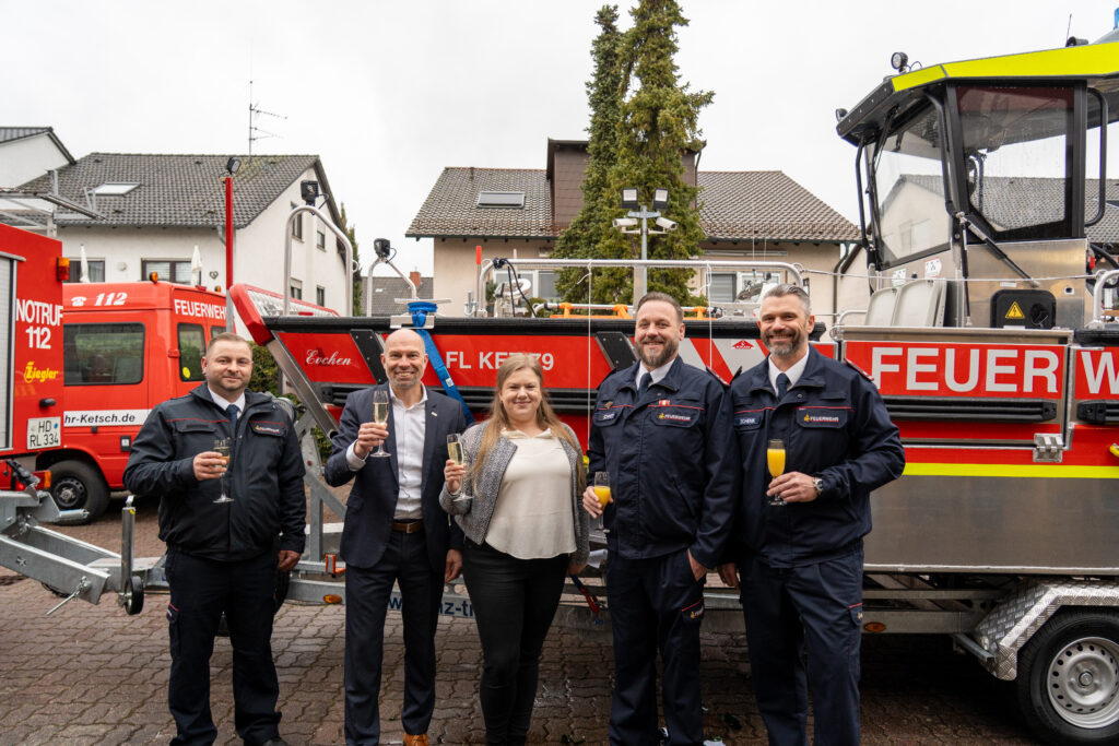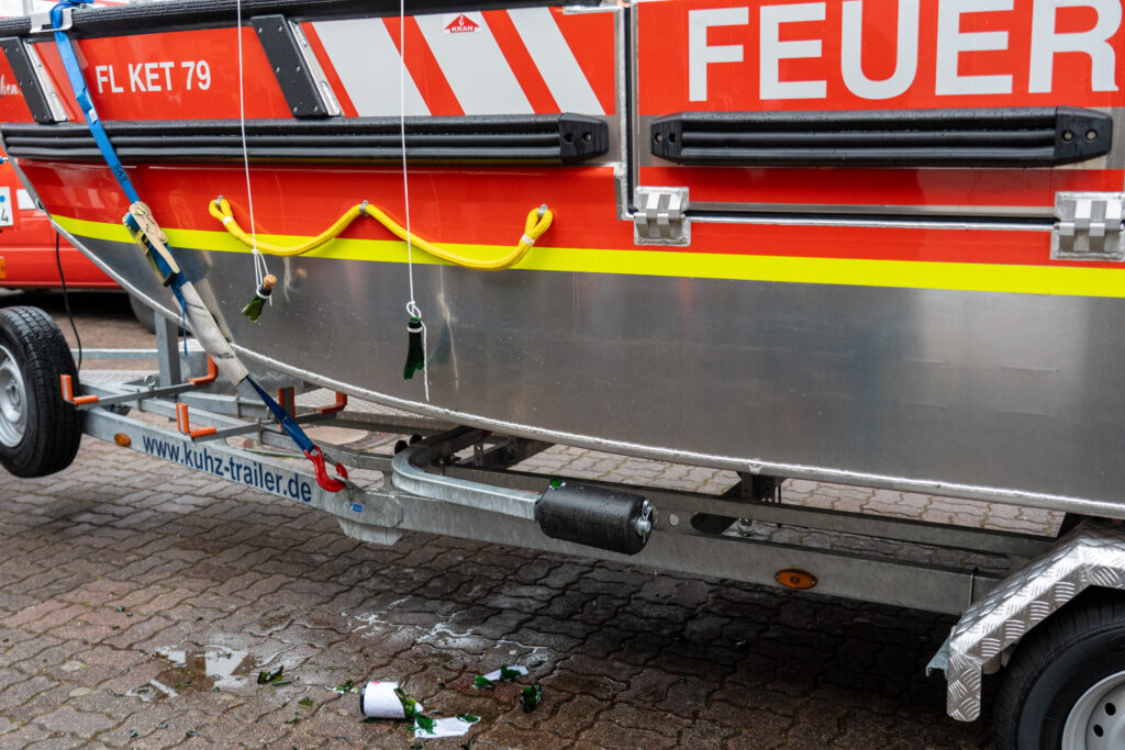 Mit diesen Worten tauften die Feuerwehrsachbearbeiterin und Ordnungsamtsleiterin der Gemeinde Ketsch, Larissa Schreiber, sowie Bürgermeister Timo Wangler am Samstag, den 28.03.2026, das neue Mehrzweckboot (MZB) der Feuerwehr Ketsch.